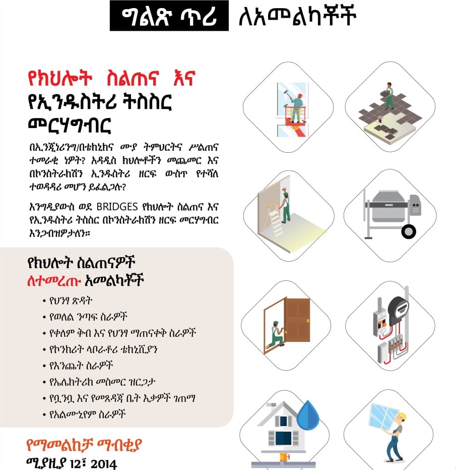 BRIDGES is a skills development and business incubation program designed to equip individuals with technical and entrepreneurial expertise, enabling them to secure employment or start their own businesses.